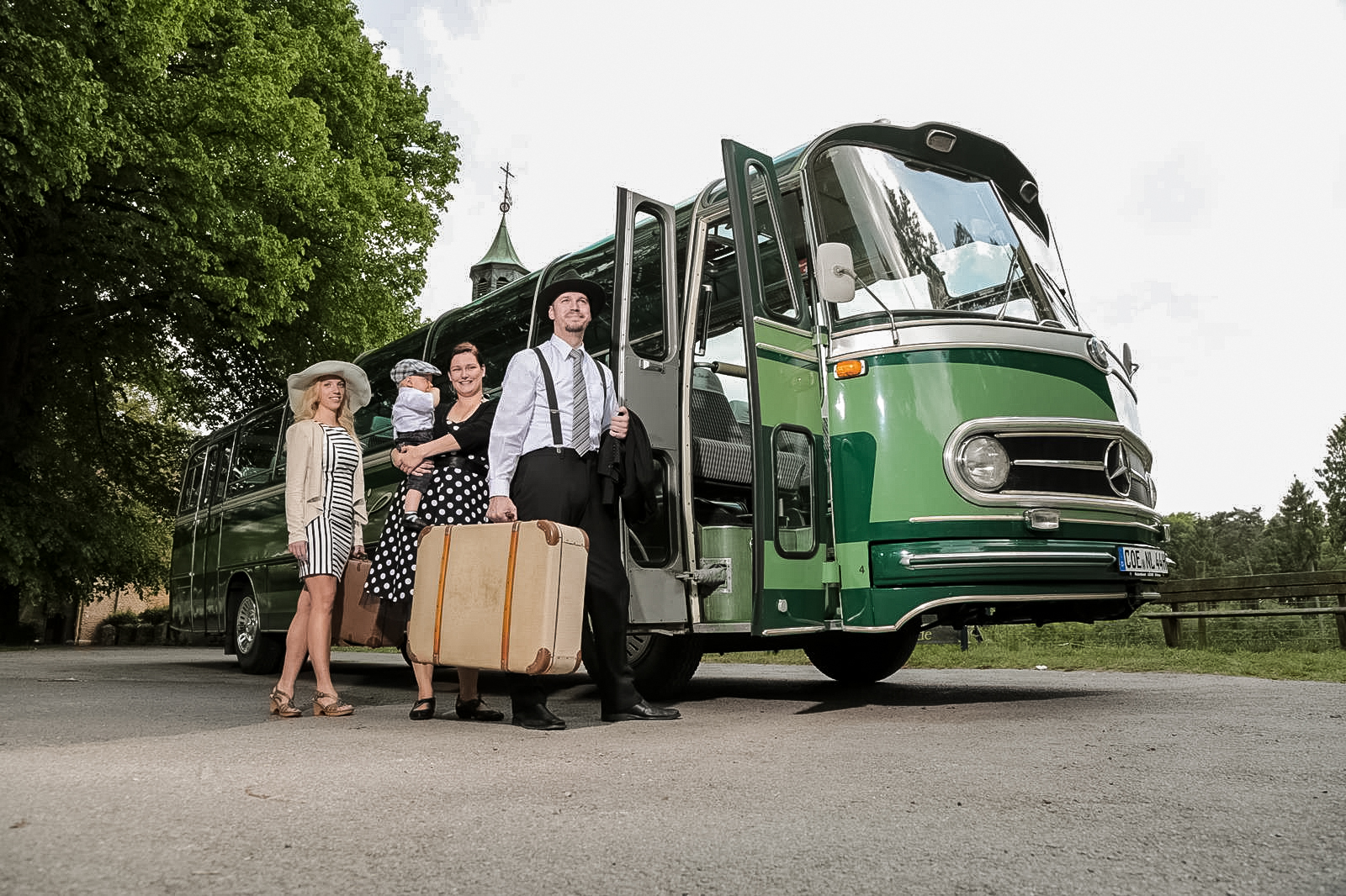 Bis zu 43 Fahrgäste erleben eine Zeitreise zurück in die Jahre als in Deutschland das Reisefieber ausbrach: Mit dem Omnibus auf geselliger Fahrt durch die schönsten Landschaften, den Horizont im Blick und ein lustiges Lied auf den Lippen.